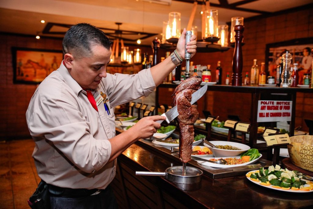 Fogo Gaucho is one of Nairobi’s most iconic Brazilian steakhouse experiences. Located in the heart of Westlands, this all-you-can-eat restaurant is renowned for its endless servings of meat, served straight from skewers by “passadors” (meat servers) directly at your table. It’s a meat lover’s paradise, offering over 15 cuts of beef, chicken, lamb, and pork, each grilled to perfection and seasoned with Brazilian flair.