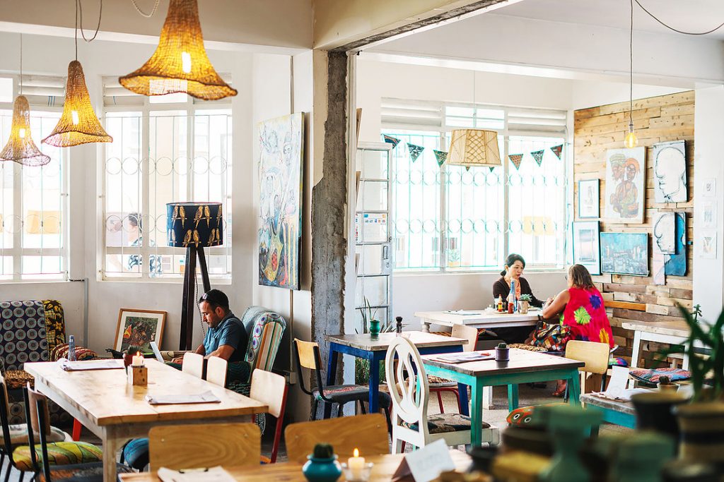 The menu emphasizes fresh, locally sourced ingredients, with breakfast and brunch items such as avocado toast, eggs Benedict, homemade granola, and specialty pancakes. The coffee is among the best in Nairobi, brewed from locally roasted beans, and served alongside baked pastries and vegan-friendly options.